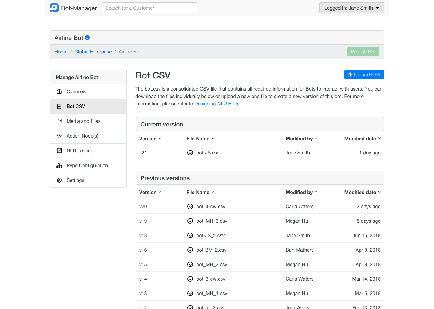 We learned that our users often collaborated, making multiple edits to a bot before approval. To support this workflow, we pioneered a "draft" feature for iterative changes and introduced the ability to download previous bot versions.